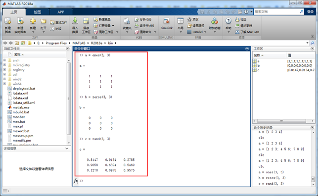 当然,也可以使用Matlab自带的函数进行创建,比如ones,zeros,rand等