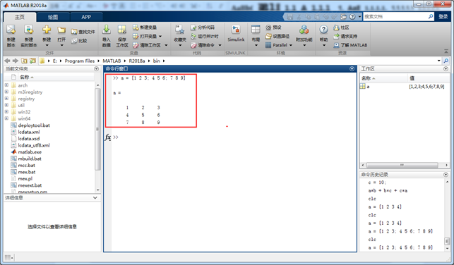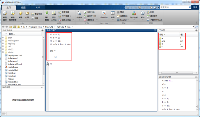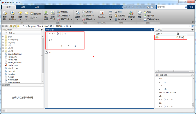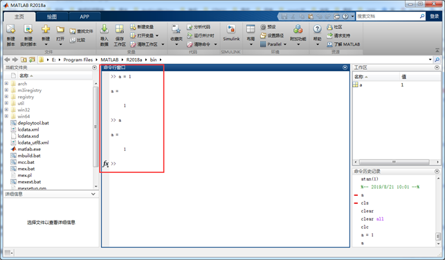 第一次输入a = 1并回车后会将变量a及其数值加入到工作区(Workspace)中。