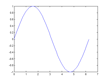 >> x = 0:pi/100:2*pi; y = sin(x); plot(x,y)