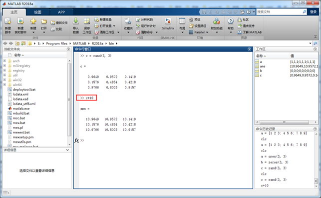 工作区中的变量来自用户创建,外部数据加载或者其它的编程加入。比如我们在命令窗户输入以下两个函数。