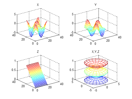 subplot(2,2,4); mesh(X,Y,Z); title('X,Y,Z');