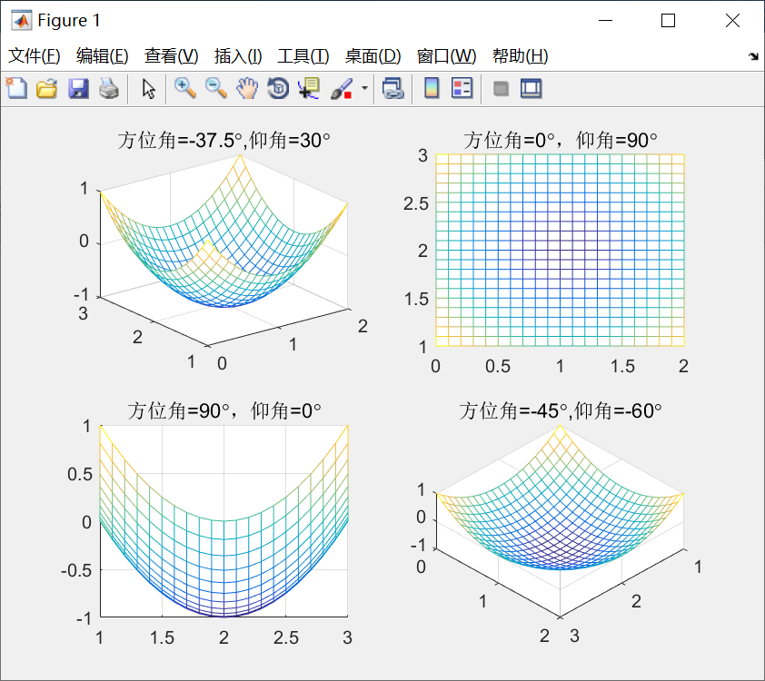 以上就是暴躁河马最近收集整理的关于MATLAB笔记4:MATLAB绘图一、二维曲线二、绘制图形的辅助操作三、其他形式的二维曲线四、三维曲线五、三维曲面六、图形修饰处理七、交互式绘图工具小结的全部内容,更多相关MATLAB笔记4:MATLAB绘图一、二维曲线二、绘制图形内容请搜索靠谱客的其他文章。