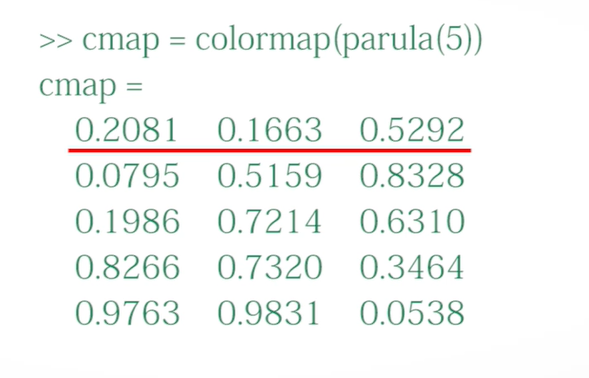 色图矩阵的每一行是RGB三元组。可以自定义色图矩阵,也可以调用MATLAB提供的函数来定义色图矩阵。