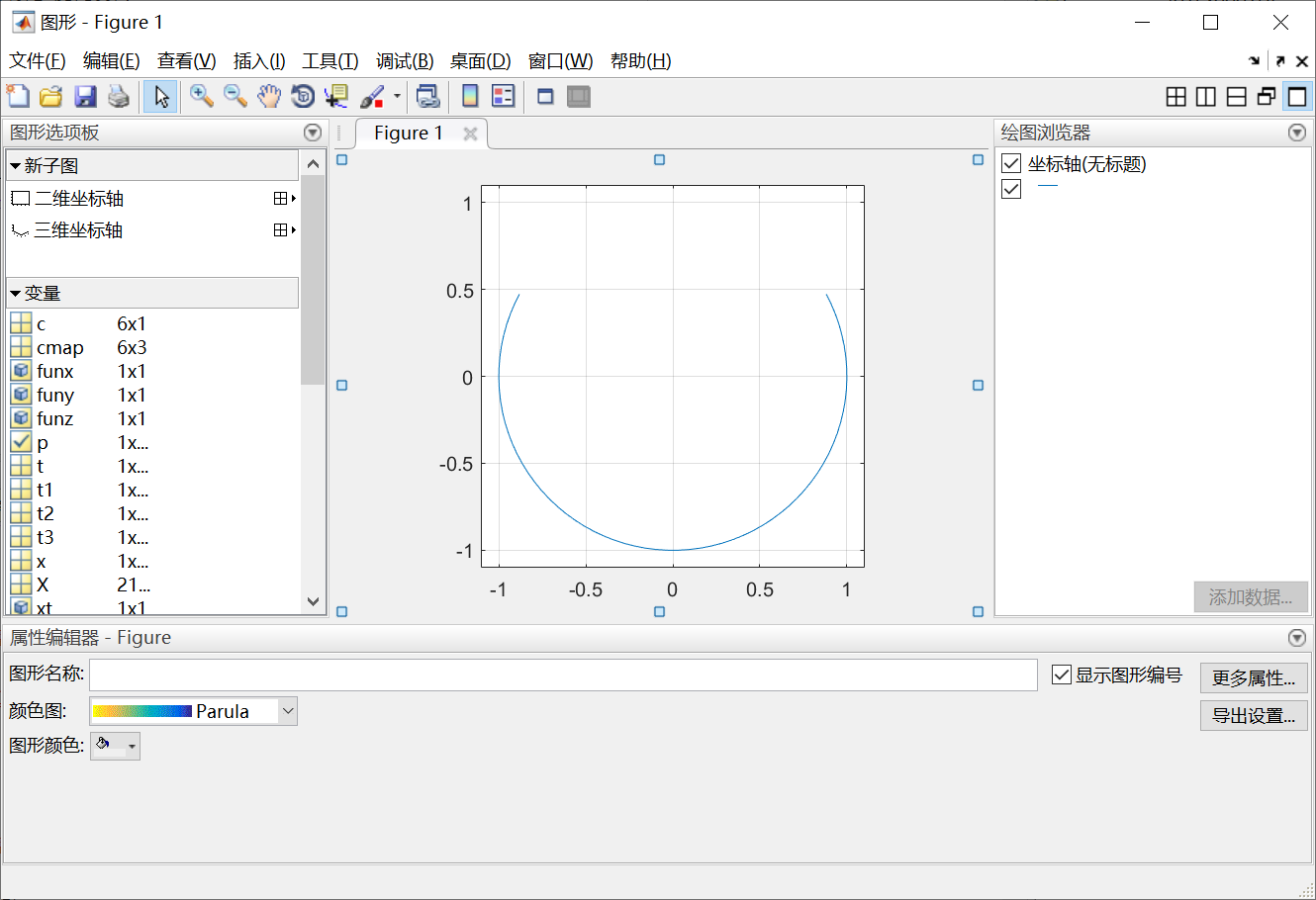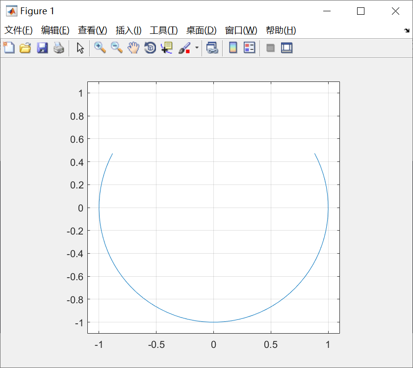 当plot函数的参数x是复数向量时,则分别以该向量元素实部和虚部为横、纵坐标绘制出一条曲线。