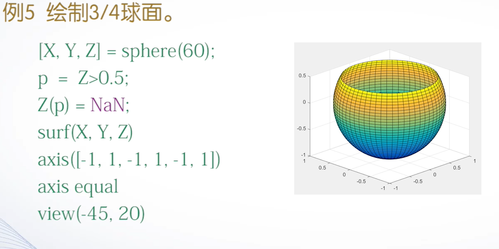 [x,y,z] = sphere(n) n为球面光滑程度,默认20,n越小,则表面越粗糙