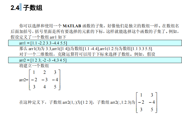 注意:matlab数组的下标是从1开始,不是从0开始