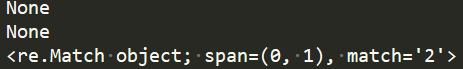 从例子中我们可以看出,re.match()方法返回一个匹配的对象,而不是匹配的内容。如果需要返回内容则需要调用group()。通过调用span()可以获得匹配结果的位置。而如果从起始位置开始没有匹配成功,即便其他部分包含需要匹配的内容,re.match()也会返回None。