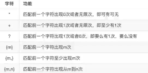 像上面写的那些都是匹配单个字符,如果我们要匹配多个字符的话,只能重复写匹配符。这样显然是不人性化的,所以我们还需要学习表达数量的字符