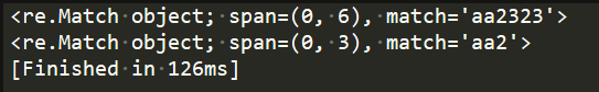 print(re.match(r"aad+","aa2323")) #会尽可能多的去匹配d