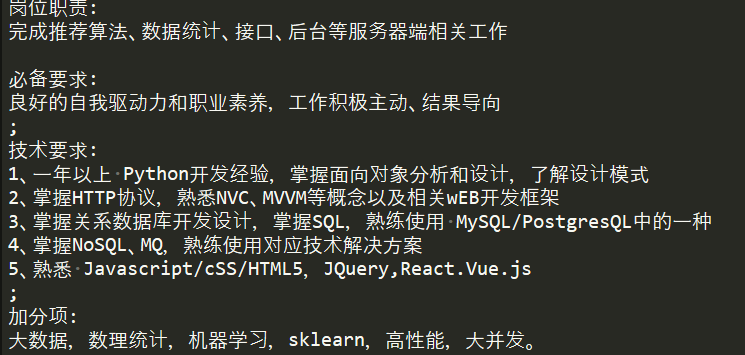 <p>1、一年以上 Python开发经验,掌握面向对象分析和设计,了解设计模式</p>