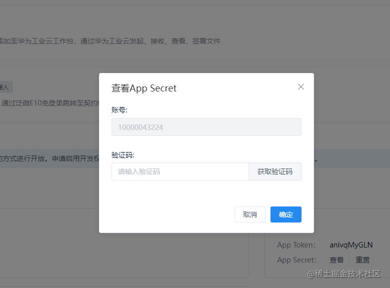 接着,返回 cloud.qiyuesuo.me 点击新创建的业务平台的 查看 按钮,在弹出框内,获取验证码。