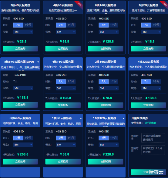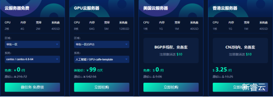 此次新睿云云产品活动力度极大,低至0元!更多活动请详见新睿云“双十一”特惠活动页面!