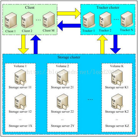 4. 读写文件时tracker负责不同组以及组内的负载均衡。
