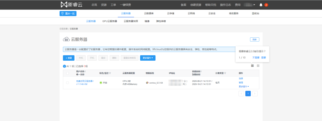 这个免费云服务器配置是2C4G,更配有2M公网带宽,云服务器下载不限速,有利于快速部署开发环境或者业务。支持丰富的操作系统,如Windows,Centos,Linux,Debian,可视化的Linux系统,和国产操作系统(即将上线)可选,部署仅需几分钟,简单易用。新睿云的控制台也很简洁直观,很容易上手操作。