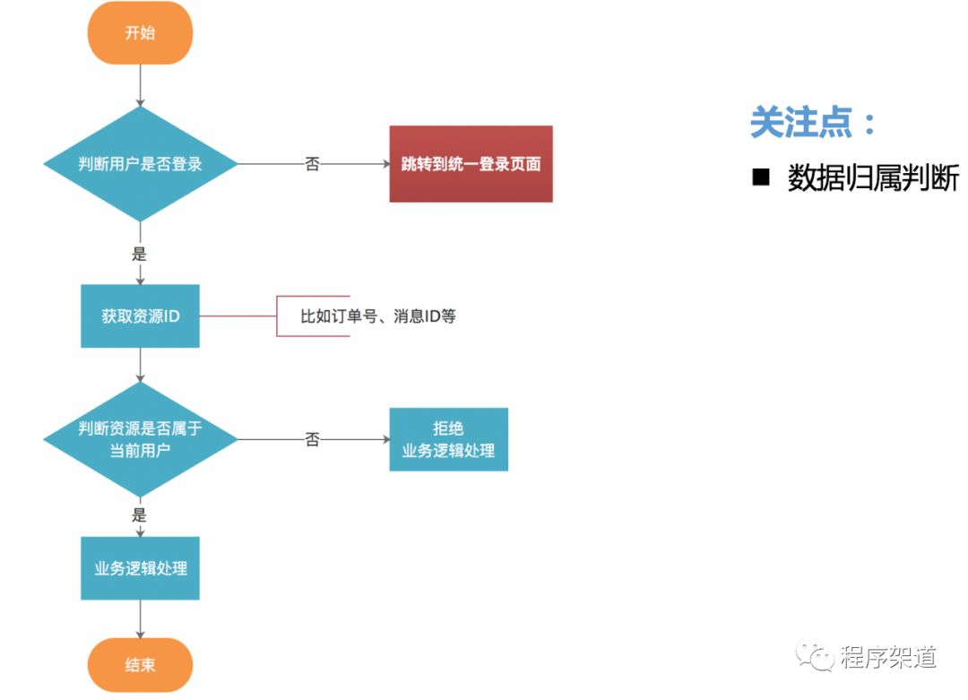 在解决越权问题上第一个要注意获取用户信息的方式,不能通过GET、Post参数、Header头中获取当前用户的登录信息。另外一个就是做数据归属判断,比如我们正在举例的订单信息查询,需要判断这个订单归属到哪个商家下面,如下图所示。