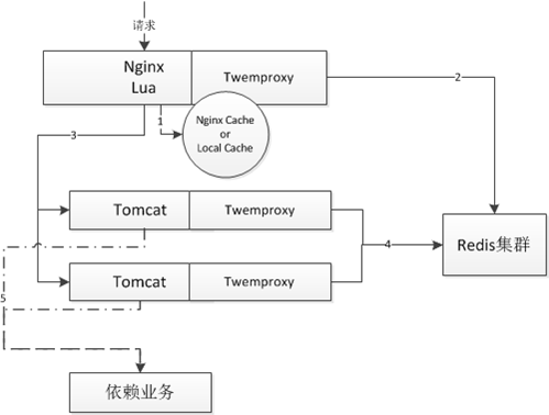3、如果还不命中,会回源到tomcat,然后读取堆内cache;如果没有,则直接调用依赖业务获取数据;然后异步化写到redis集群;