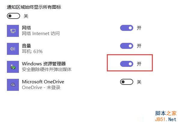 3、找到Windows资源管理器,将其设置为“开”就可以了。