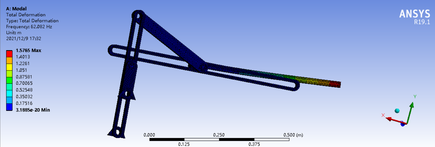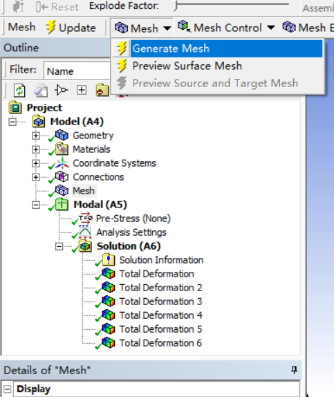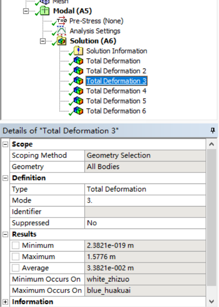 以上就是缓慢龙猫最近收集整理的关于ANSYS模态分析详细步骤记录1,打开WorkBench,双击Modal,生成右边的表格 2, 右击Geometry,import一个模型,我这里已经添加了就变成了另一个选项 3,双击Model,打开开始编辑 4,打开之后选择材料,默认结构钢 5,连接部分设置好机构的连接 6,点击Mesh之后,上面再点击Generate Mesh7,右击Solution开始计算,这里已经计算完成了就是这样8,算完之后出现下图9,Solution中插入一个Deformation->Total 10,设置Mode为的全部内容,更多相关ANSYS模态分析详细步骤记录1,打开WorkBench,双击Modal,生成右边的表格 2,内容请搜索靠谱客的其他文章。