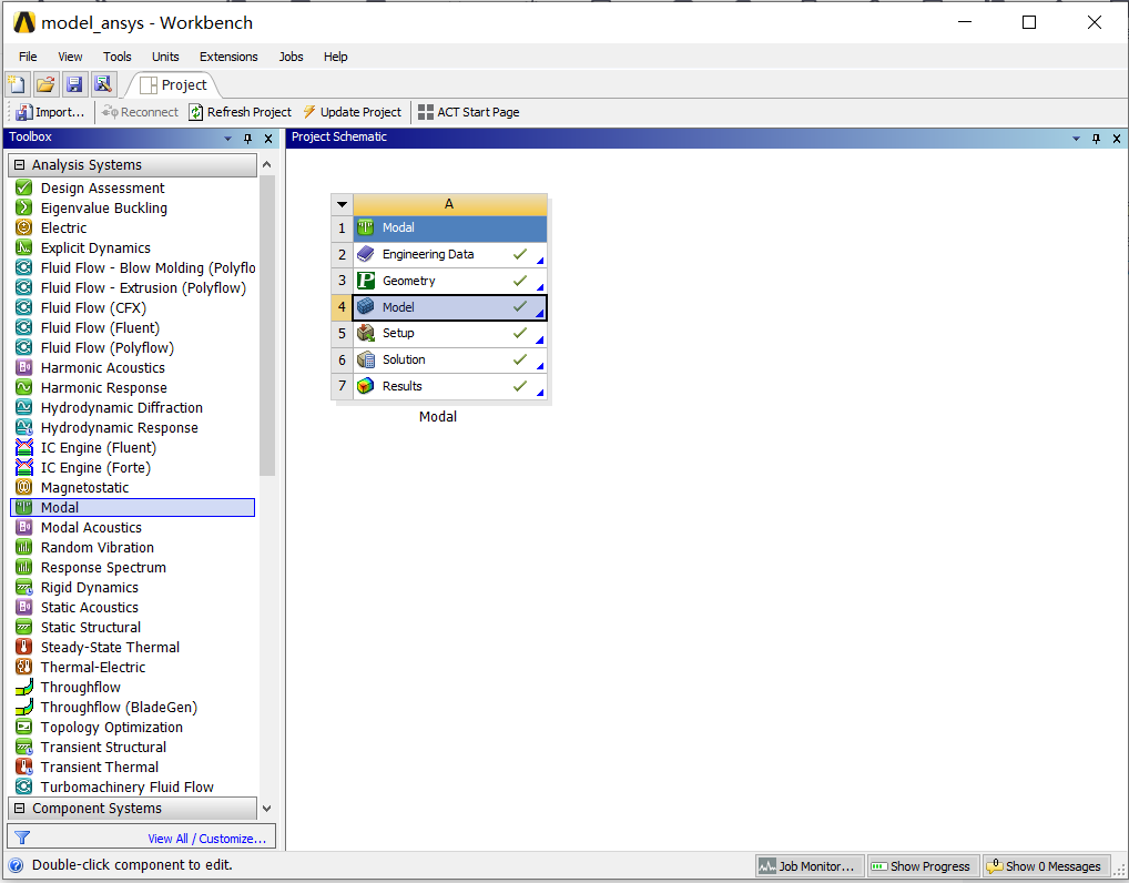 1,打开WorkBench,双击Modal,生成右边的表格