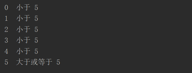 print (count, " 大于或等于 5")