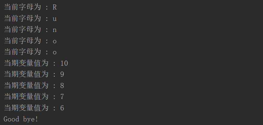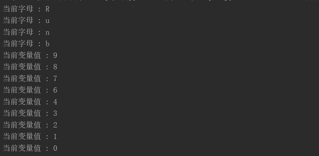 print ('当前字母为 :', letter)