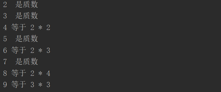 如下实例用于查询质数的循环例子: