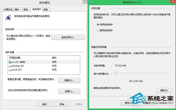 然后选择系统保护功能,系统默认是关闭的,建议手动开启(启用)并配置磁盘空间使用量。