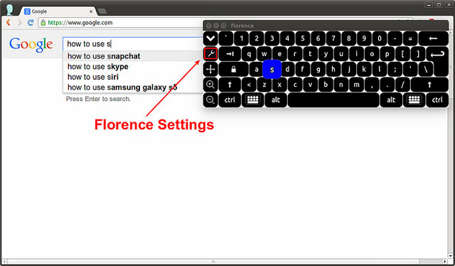 当你安装好 Florence 之后,你只需要简单的输入以下命令就能加载屏幕键盘: