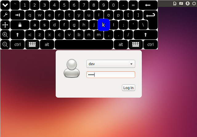 当你启动 Ubuntu 桌面时,启动程序最后会停在显示管理器 (或者登录管理器) 的欢迎界面。在这个界面上你需要输入你的登录信息。默认的情况下,Ubuntu 桌面会使用 LightDM 显示管理器和 Unity 欢迎界面。如果没有实体键盘, 你就不能在登录界面输入用户名和密码。