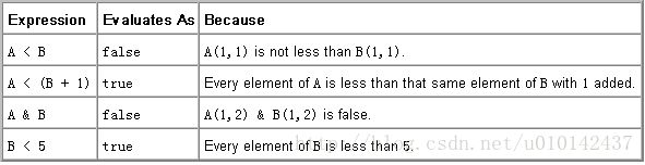 如果需要计算的表达式产生一个非标量的值,那么只有当该值的每一个元素都为true或者非零时,才认为该表达式为true。例如,对于语句if(A<B),只有当A矩阵的每一个元素都小于B矩阵对应元素时,才认为此表达式为true。