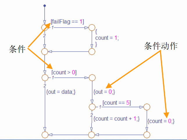 1#概念:流程图是用来描述一系列决策流的逻辑图(一般要放在Simulink模型文件中),如下图所示: