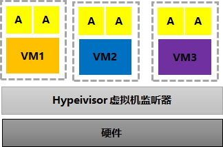 Hypervisor构建出一整套虚拟硬件平台(CPU/Memory/Storage/Adapter),上面需要你再去安装新的操作系统和上层应用软件,这样底层和上层的OS就可以完全无关化,如Windows系统上运行Linux一点问题的都没有;