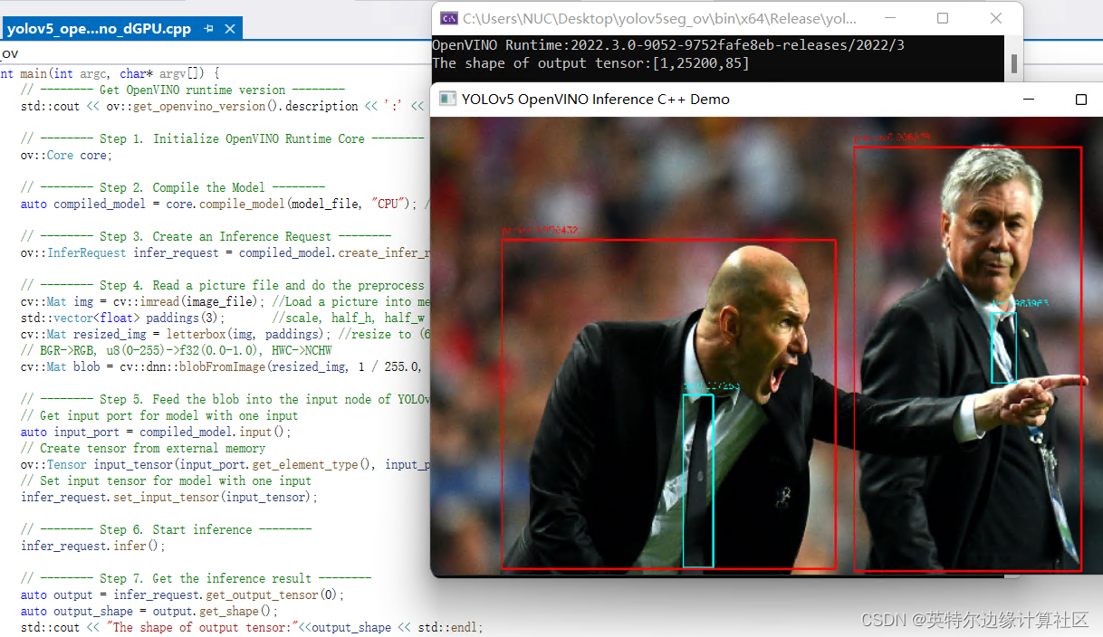 以上就是落后哈密瓜最近收集整理的关于基于OpenVINO 在C++中部署YOLOv5模型的全部内容,更多相关基于OpenVINO内容请搜索靠谱客的其他文章。