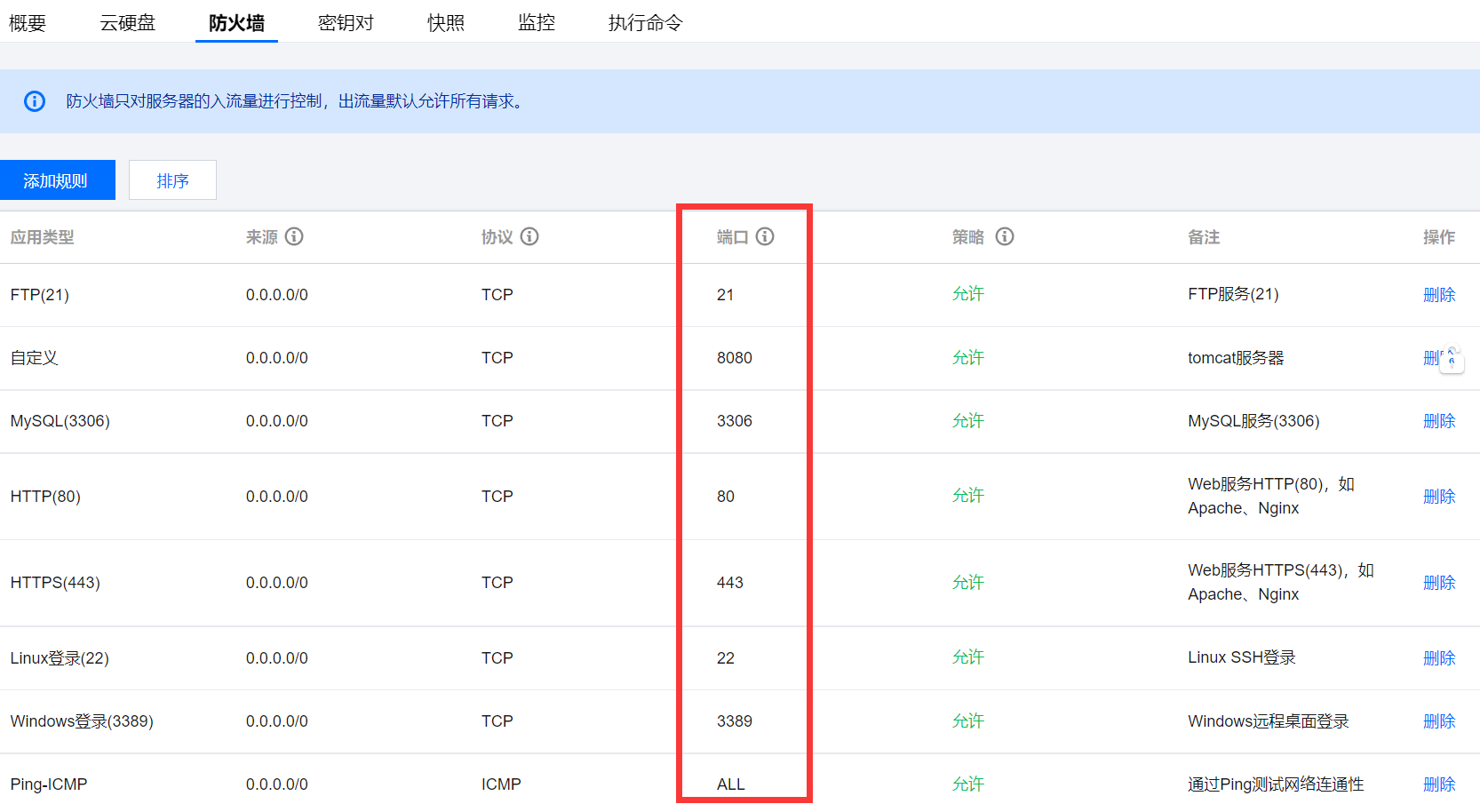 安全组规则可以看到所有的规则