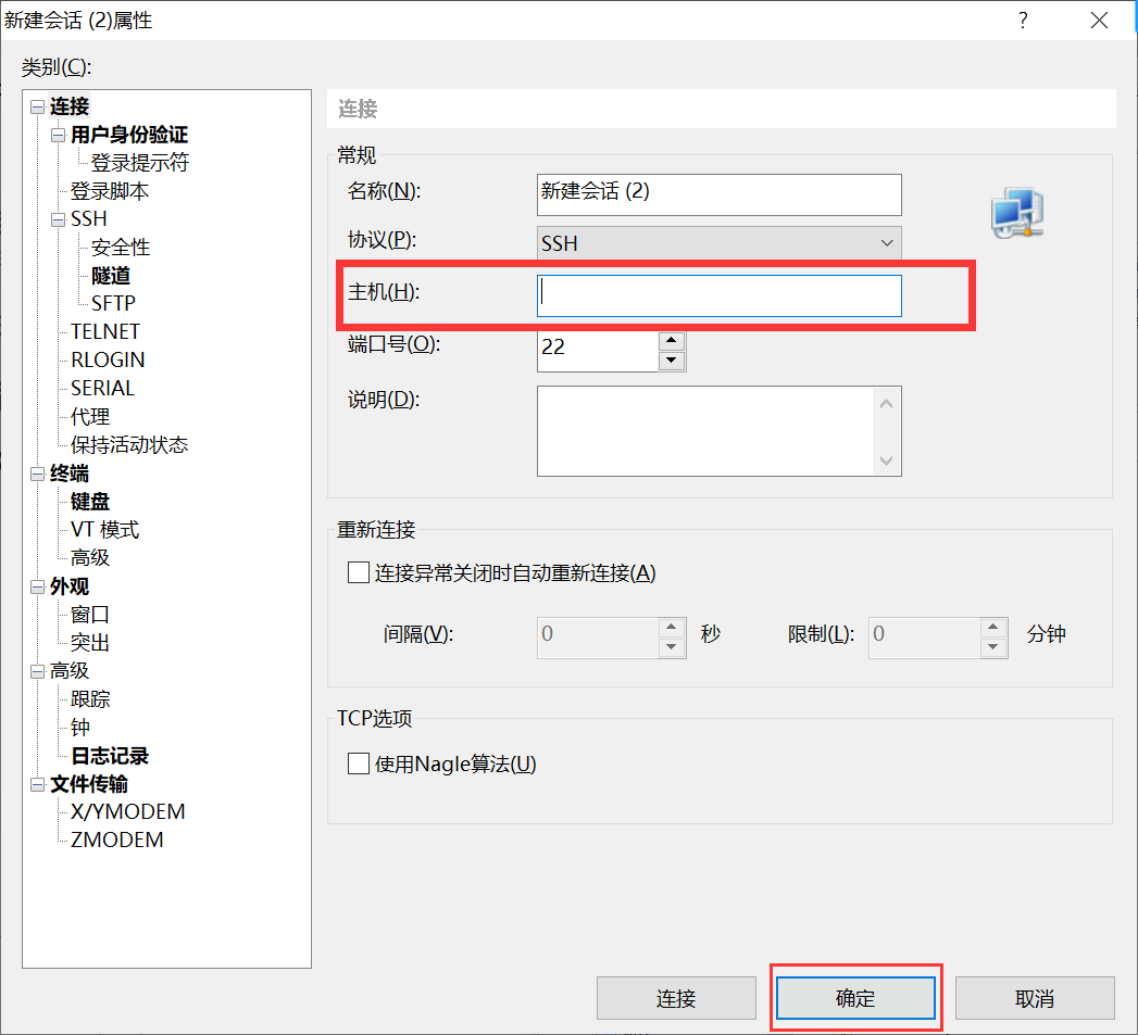 1.打开Xshell程序(输入主机公网ip后点击确定)
