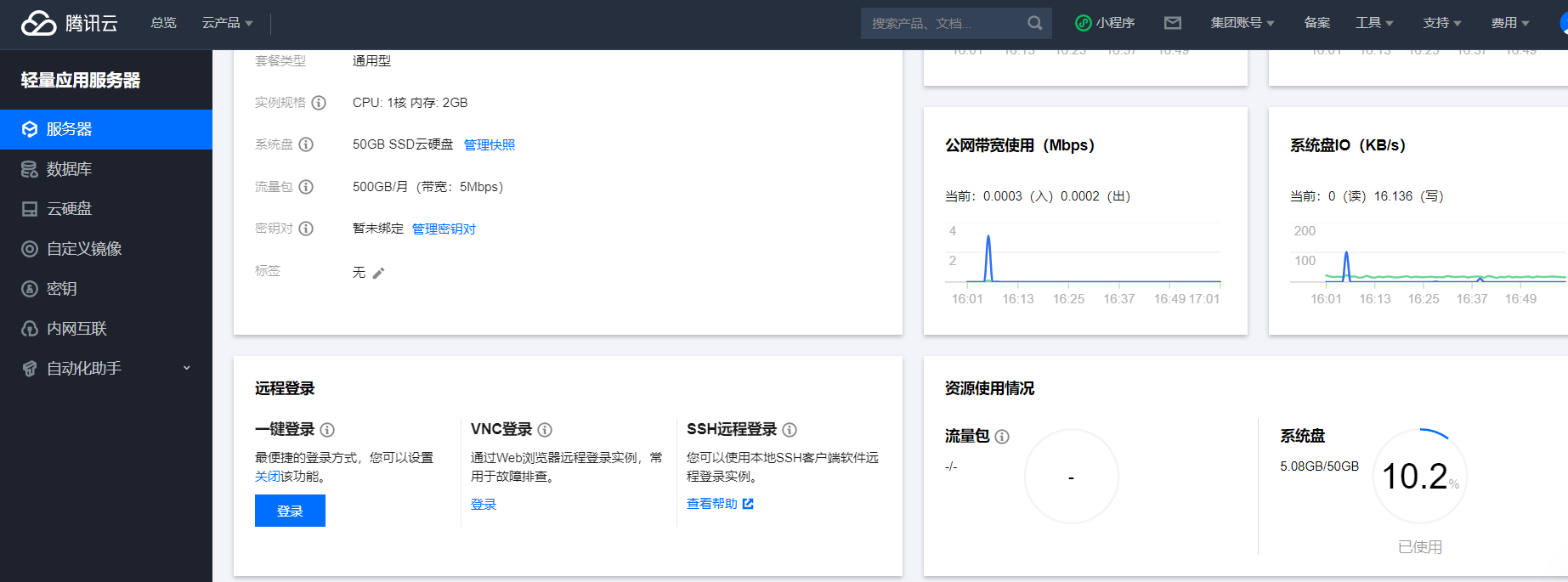 4.用户购买了云服务后,登录进入服务器实例页面,以腾讯云服务器为例: