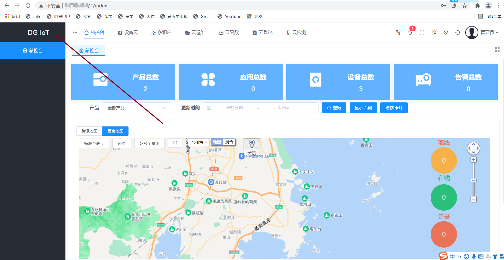 登录后出现如下页面,恭喜你一键式部署成功,可以使用DG_IOT平台进行对应操作
