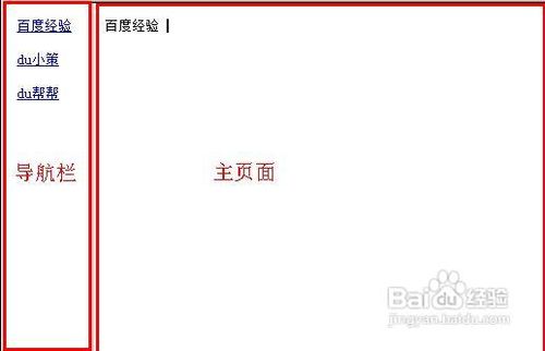 dreamweaver提供了快速建立网站框架的方式,我们可以通过简单预设模板来达到快速的架构一个简易网站的目的。看看下面这个网页的基本结构,这是我们今天的目标,左侧导航栏,右侧显示主页面。