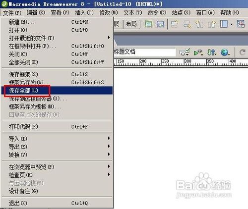 11、点击“文件”——全部保存,记住这一步不是“ctrl+s”,因为框架页面是有两个页面构成的,所以要选择全部保存。