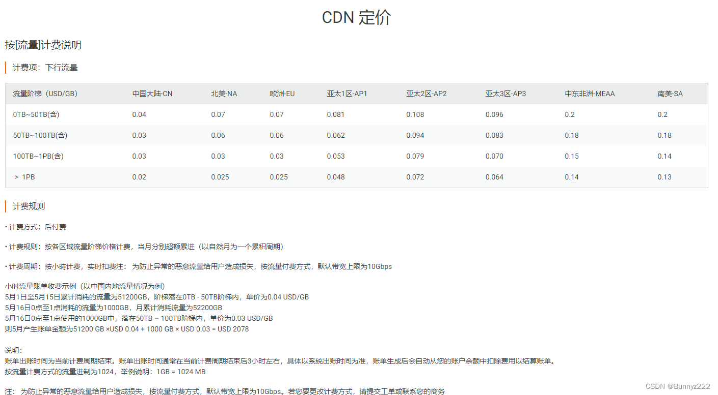 • 计费规则:按各区域流量阶梯价格计费,当月分别超额累进(以自然月为一个累积周期)