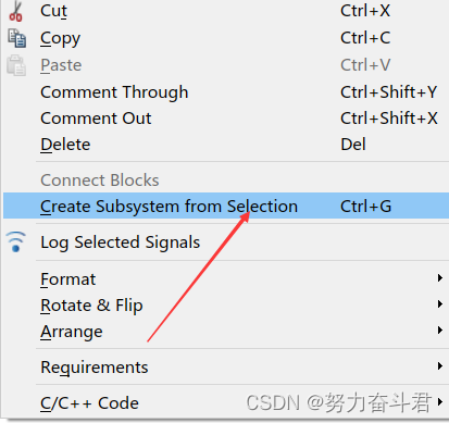 全选上述模块,按住Ctrl+G或者 全选+鼠标右键 选择下图所示的Creat Subsystem from Selection