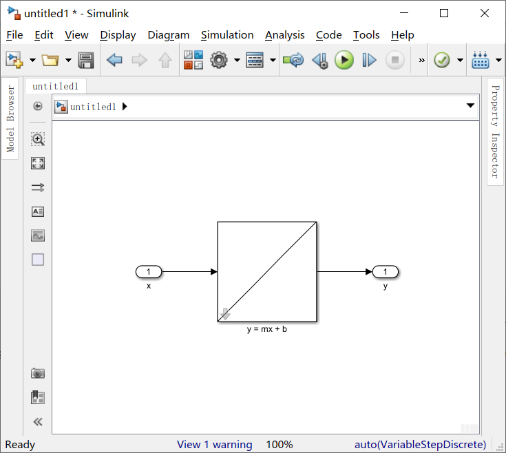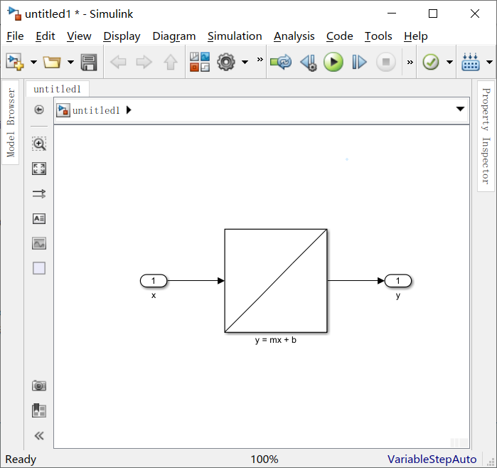 (1)打开要在其中封装模块的模型。例如,打开 subsystem_example。此模型包含一个 Subsystem 模块,该模块为直线方程建模:y = mx + b。