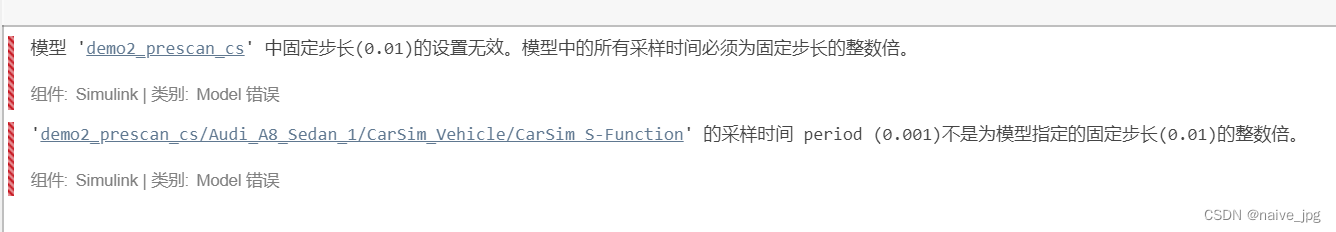 前者采样时间必须是后者采样时间的整数倍才可正常仿真。我这里修改后者为1/1000。