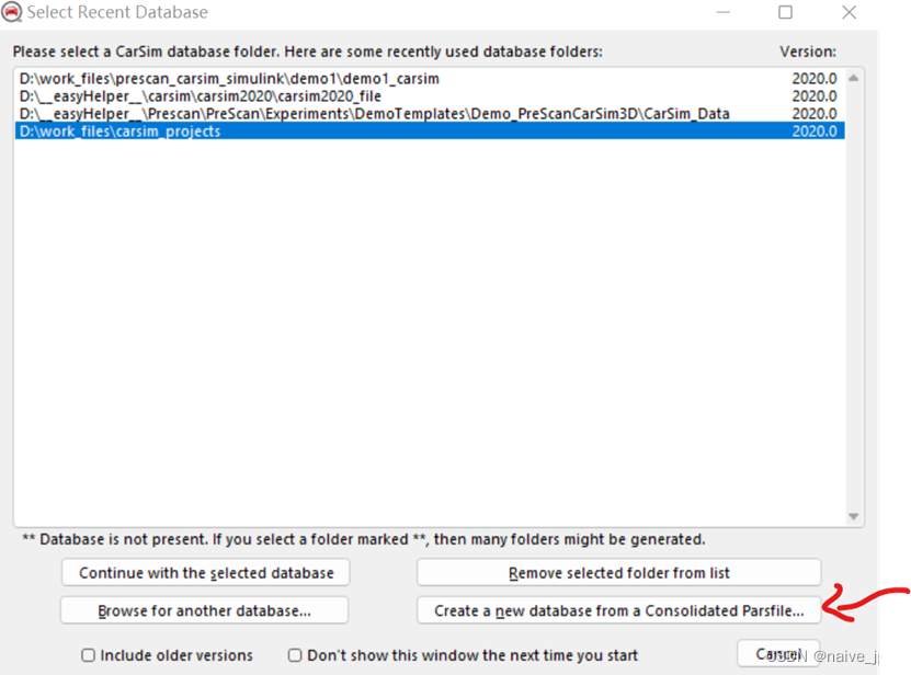 2、continue后弹出窗口选择依赖文件,这个文件是创建此carsim工程的初始化文件,后缀名为.cpar,在prescan的例程中有示例(也可以自己重新建立,但不会初始就有mdl文件,网上有相关详细教程)
