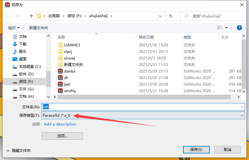 文件类型选择Parasolid (*.xmt txt, *.x_ t, *.xmt_ bin,*.x_ b)