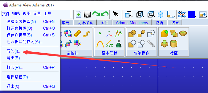 模型创建好后另存为.x_t格式,文件名建议不要带有中文,因为带有中文在Adams里面识别会报错。