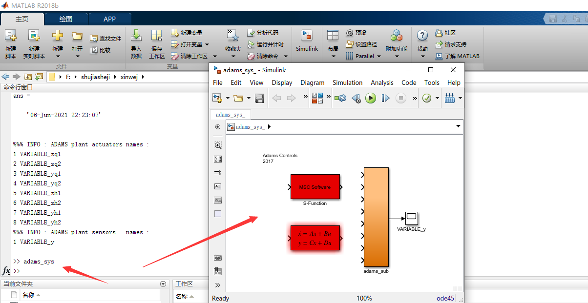 在MATLAB中找到Adams导出Controls_Plant_2.m文件点击运行
