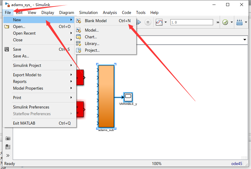 在命令行窗口输入adams_sys点回车键弹出simulink界面