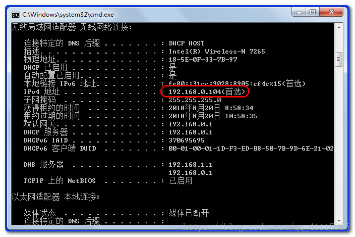 打开终端,输入ipconfig/all即可查看当前的IP地址。