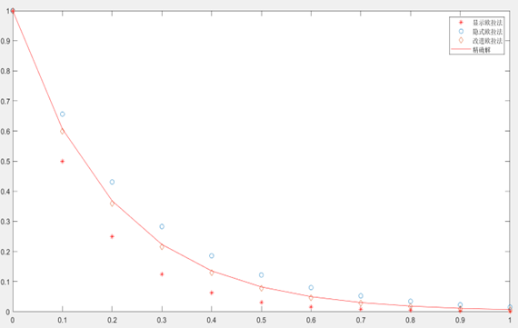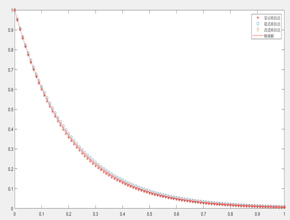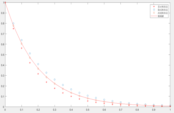 legend('显示Adams外插','精确解','隐式Adams内插');